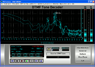 The features of the software include a 2048 FFT Spectrum Analyzer, a WAV recorder / player with built in looping, a sine wave and white noise generator, a simple oscilloscope, and a DTMF decoder for decoding recorded DTMF tones from WAV files with a 45 character display window. DTMF decoding in real time from WAV files or high speed DTMF decoding from the file (faster than real time). The software uses the built in microphone / line / aux / CD inputs from your internal or external sound card. The analyzer provides the capability to store and recall audio spectrums, print spectrums, applying gain to the signal, and load saved spectrums behind active inputs.
